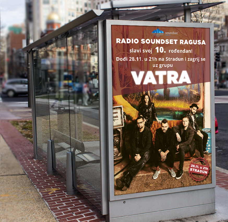 Soundset Ragusa obilježava 10. rođendan, a tim povodom slušatelje daruje besplatnim koncertom u stilu slogana kojim se vodi – samo dobra glazba. U subotu 28. studenog 2015. ispred crkve sv. Vlaha s početkom u 21 sat nastupit će ‘Vatra’, jedan od najpopularnijih bendova u Hrvatskoj.