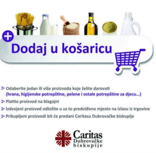 Caritas Dubrovačke biskupije i ove godine pokreće tradicionalnu korizmenu akciju “Dodaj u košaricu” u suradnji s trgovačkim lancima i trgovinama na području biskupije: području grada Dubrovnika, Župe dubrovačke, Konavala te otoka Korčule. Pozivaju se svi koji su u mogućnosti da se uključe u Caritasovu akciju te na taj način pokažu djelotvornu ljubav prema bližnjima u potrebi.