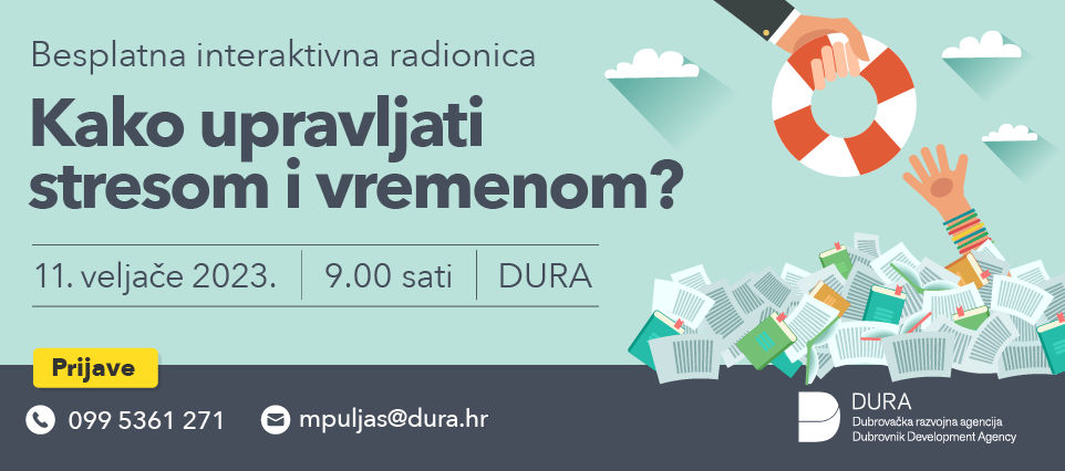 Stres je jedan od najvećih problema suvremenih poslovnih ljudi. Utječe na zdravlje i produktivnost, te na cjelokupne rezultate tvrtke. Usko je povezan i samim procesom upravljanja vremenom, pa je u okviru Startup akademije organizirana radionica „Kako upravljati stresom i vremenom u nikad izazovnije doba?“. Radionica će se održati u subotu, 11. veljače u prostorijama DURA-e (Branitelja Dubrovnika 15) s početkom u 9 sati.