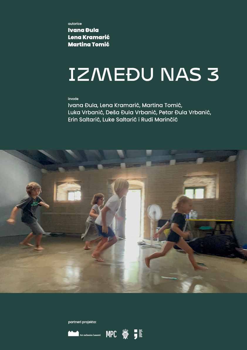 Između nas 3 nastavak je suradnje na projektima ”Između nas” i ”Kako je bolje biti mačka u Dubrovniku” u kojima su se dramaturginja Ivana Đula, likovna umjetnica Lena Kramarić i plesna umjetnica Martina Tomić bavile dvostrukom majčinsko-umjetničkom pozicijom i stvaranjem u (ne) idealnim uvjetima u kojima je uloga majke u svakom trenutku bila nadređena onoj umjetnice. Ovaj put bave se i ulogom djece koju dovode u pitanje: stvaraju li njima prostor autorstva bez ili sa kontrolom te predstavlja li njima to luksuz ili teret?