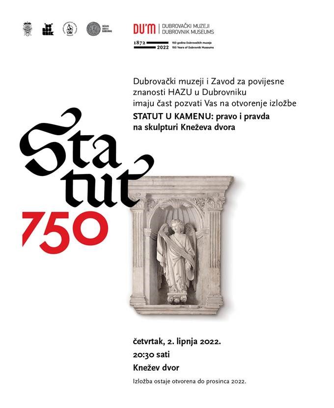 Izložbom „Statut u kamenu: Pravo i pravda na skulpturi Kneževa dvora“ koja će biti otvorena do prosinca ove godine, Dubrovački muzeji nastavljaju i s programom obilježavanja 150. obljetnice svog osnutka.