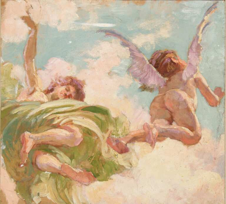 Tijekom cavtatskog perioda, od 1898. do 1902. godine, Vlaho Bukovac je izveo nekoliko većih kompozicija za javne i crkvene institucije zavičaja, a između njih ističe se dekorativna slika "Dvostruko krunjenje na nebu i zemlji" na stropu dubrovačkog kazališta. Pripremne radove ovog alegorijskog prikaza pjesništva i narodne poezije započeo je u svom cavtatskom ateljeu, a rad na velikim platnima nastavio je u dubrovačkoj općinskoj dvorani, da bi ih 1901. sam zalijepio na strop kazališta. Kompozicija i danas krasi Kazalište Marina Držića, a više o temi saznajte na izlaganju muzejske pedagoginje Maris Stanović u četvrtak, 17. studenog u 17 sati u Kući Bukovac.
